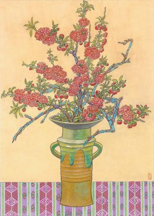 祝大年(1916-1995)出生于浙江省诸暨市,曾先后就读于杭州艺术专科学校和北平艺术专科学校,后赴日本攻读陶瓷美术。清华艺术博物馆将祝大年的成就概括为:中国现代陶瓷工业的重要开拓者、新中国“建国瓷”的设计师和监制者、新中国成立初期“实用美术”新历程的开启者。祝先生在壁画艺术和工笔重彩绘画领域同样建树卓著,其创作汇集了传统的笔墨意趣和西洋绘画的技巧,形成了自己独特的艺术语境。